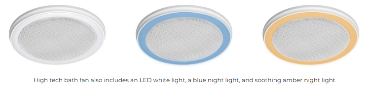 The Home Netwerks™ 110 CFM ventilation fan features an integrated Bluetooth®-enabled stereo speaker, LED light, and LED night lights. Perfect for the tech-savvy homeowner with a desire to stream audio from their smartphone or tablets into their bathroom.